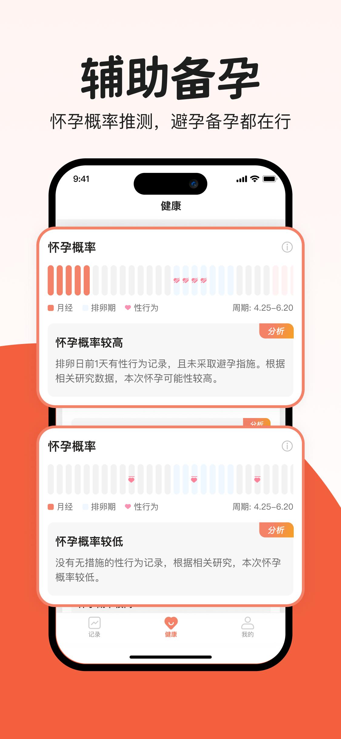 1 秒记录经期,清晰分析周期变化,辅助备孕与避孕,轻松管理女性健康。